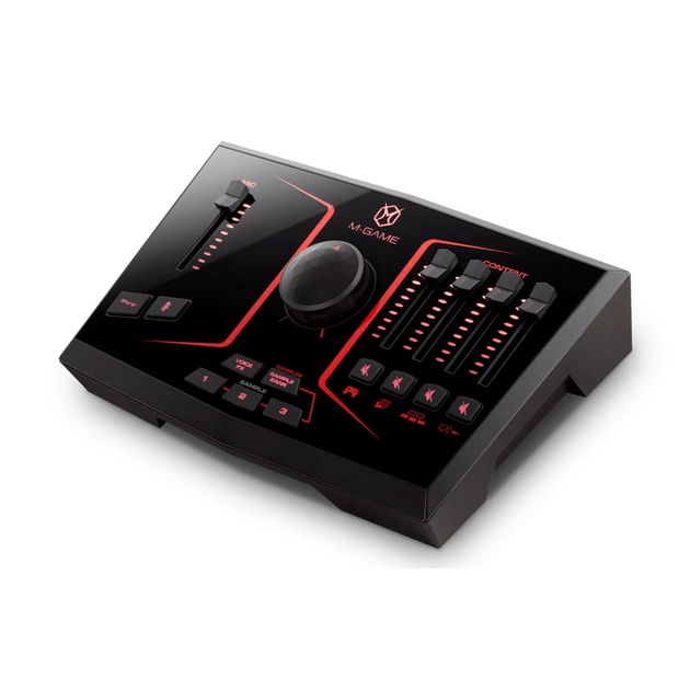 M-GAME SOLO - це потоковий USB інтерфейс/мікшер для двох комп'ютерів зі світлодіодним RGB-підсвічуванням, що настроюється, семплером, звуковими ефектами та засобами формування голосу в поєднанні з професійним аудіоінтерфейсом і фізичною панеллю управління мікшуванням.