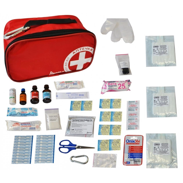 Аптечка згідно ТУ є незамінним елементом для активних людей. Призначена для надання першої медичної допомоги в подорожах, туристичних мандрівках, на відпочинку. Допоможе при порізах, опіках, саднах, розтягненнях м'яких тканин, зупинці кровотечі. Має у складі антисептичні засоби та перев'язувальні матеріали.