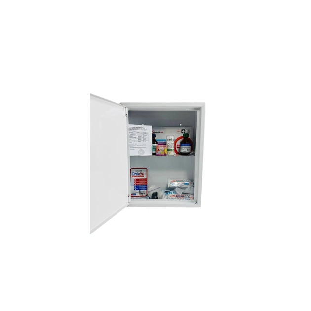 Poputchik 02-079-IS - Аптечка виробнича для заводів, цехів згідно ТУ в металевому ящику. Аптечка містить вироби для обробки та перев'язки ран, антисептичні, дезінфекційні, протиопікові засоби, які стануть в нагоді при різного роду незначних травмуваннях Металевий кейс для медикаментів можна розмістити в зручному доступному місці прикріпивши до стіни в цеху, на виробництві, на складі. Довідник з надання першої допомоги та рекомендації щодо застосування вкладень допоможуть вам швидко та ефективно використати медичний виріб ( засіб) за призначенням. В залежності від напрямку діяльності виробництва та видів травмувань - рекомендується доукомплектовувати додатковими засобами першої допомоги.