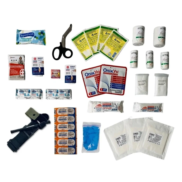 Головною особливістю цієї аптечки є сертифікований джгут-турнікет "Дніпро", який забезпечує швидке та ефективне зупинення кровотечі, критично важливе у випадках серйозних поранень. Такий інструмент дозволяє мінімізувати ризики для життя до прибуття професійної медичної допомоги.