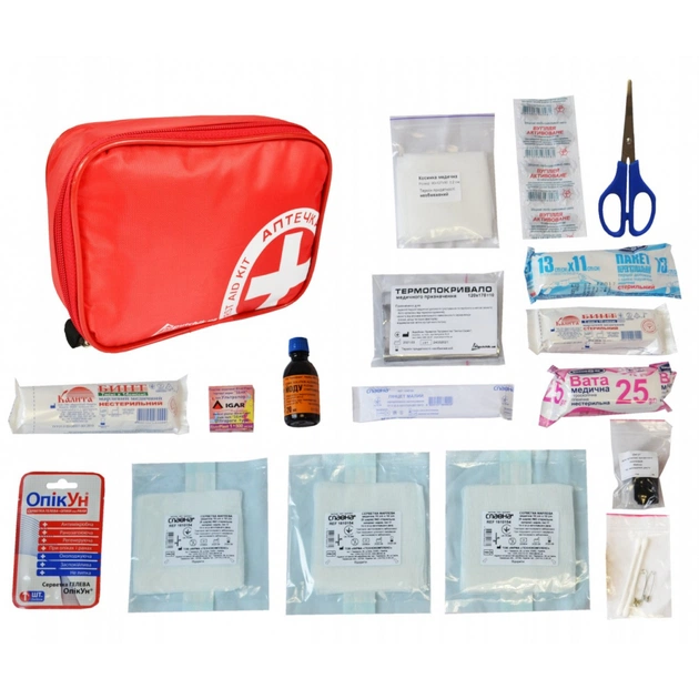 Автомобільна аптечка Poputchik згідно ТУ футляр м'який червоний 19х8х14 (02-037-М)