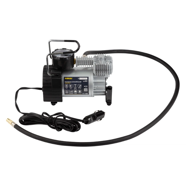 Компресор автомобільний 12В, 180Вт, 37л/хв, 10бар SIGMA (6170251) використовується для підкачки колес автомобіля. За допомогою перехідника від прикурювача на клеми і насадок, які поставляються в комплекті, ви можете підключити компресор безпосередньо до акумулятора і використовувати у побуті для накачування спортивного інвентарю.