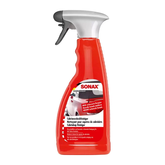 Спеціальний очисник SONAX Cabrioverdeck Reiniger (309200) для всіх складаних верхів кабріолета з тканини та пластику. Швидко, ретельно й особливо дбайливо видаляє навіть стійкі забруднення. Легко застосовувати під час миття автомобіля. Очисник складаного верху SONAX не ушкоджує оригінальне лакофарбове покриття.