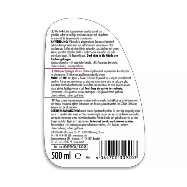 Автомобільний очисник Sonax Cabrio Verdeck Reiniger 500 мл (309200)