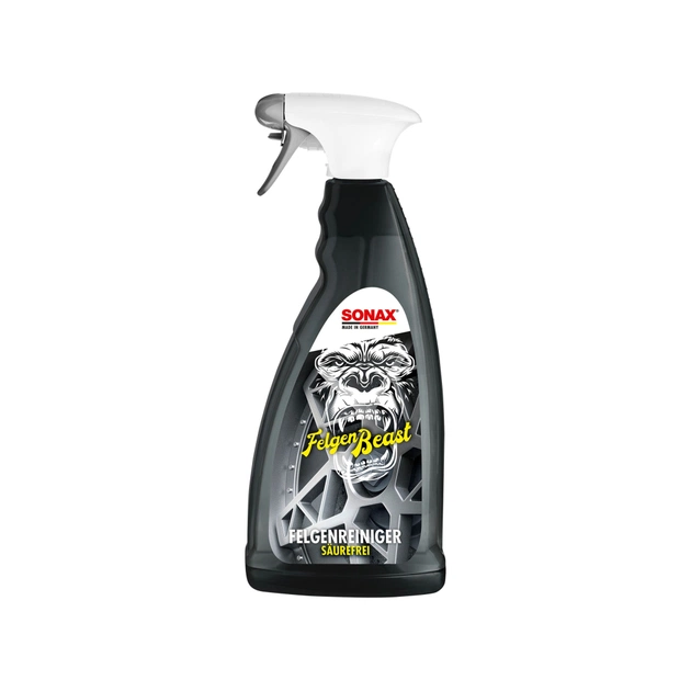 Сильнодіючий очищувач дисків SONAX Felgen Beast (433300) призначений для ефективного очищення сталевих і забарвлених алюмінієвих дисків. Видаляє дуже швидко і ефективно навіть стійкі забруднення, такі як пригорілий гальмівний пил, залишки гуми і масла, дорожня хімія, залишки комах, а також інші дорожні забруднення. Не містить агресивних кислот. Засіб поставляється у великій зручній тарі об’ємом 1 л із якісним професійним розпилювачем.
