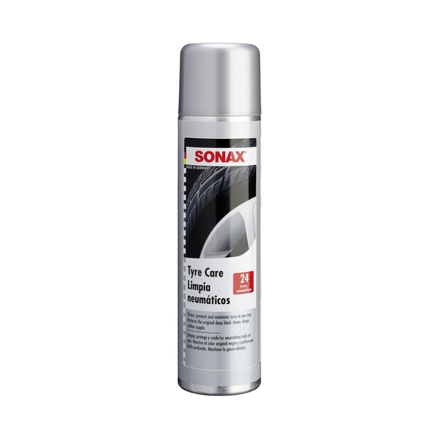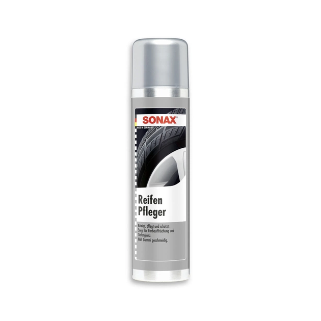 Пінний очищувач шин (з ефектом мокрої гуми) SONAX Reifen Pfleger (435300) – пінний очисник шин застосовується для глибокого та якісного очищення гуми від забруднень. Крім цього, пінний очищувач шин SONAX має захисні властивості – запобігає появі тріщин та змін структури у шинах.