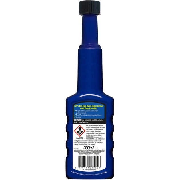 Присадка до палива від бренду STP моделі Start-Stop Diesel Engine Cleaner 200мл необхідна для висококонцентрованого, глибокого очищення паливної системи, при цьому ефективно видаляє відкладення на клапанах та інших деталях системи. При використанні забезпечує плавний хід двигуна та пуск двигуна. Має захисні здатності від корозії, нагару на клапанах та різних деталях паливної системи, окислення, зношування при постійній роботі. В декілька разів покращуються мастильні властивості. Чисті форсунки покращують розпилення палива, через шо витрата палива та ризик пошкоджень стає меншим.