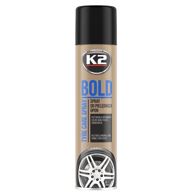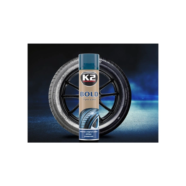 Засіб K2 BOLD SPRAY K1561 600 мл надійно захищає гуму від впливу зовнішніх негативних чинників, в тому числі прямих сонячних променів і води.