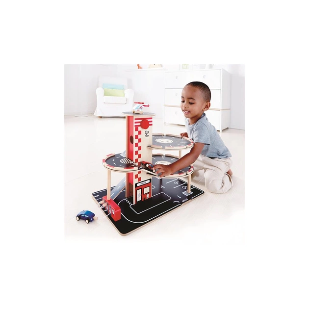 Паркінг дерев'яний Hape з вертолітним майданчиком (E3002) відповідає міжнародним стандартам якості EN 71 і ASTM F963. Батарейки не потрібні.