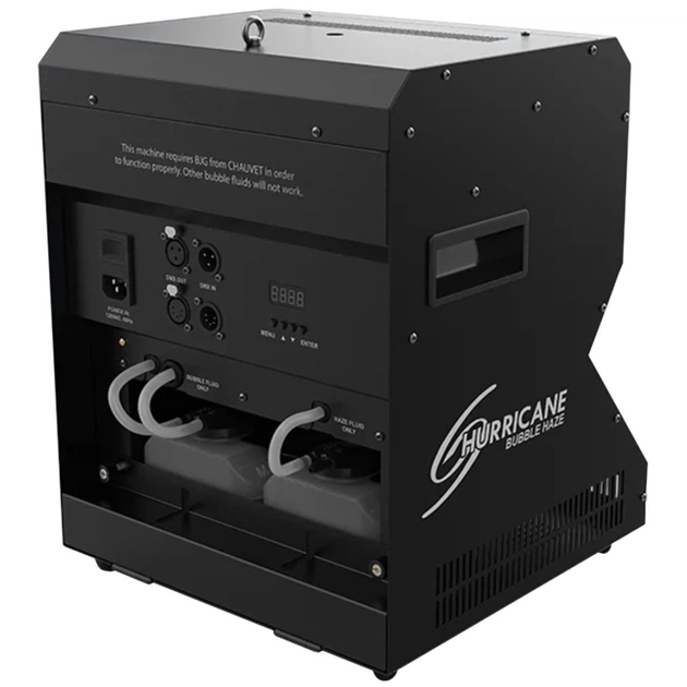 Hurricane Bubble Haze оснащений бульбашковим резервуаром з гравітаційною подачею, який рециркулює невикористану бульбашкову рідину, знижуючи її витрату. Вбудована функція очищення збільшує термін служби машини і зменшує засмічення. Hurricane Bubble Haze сумісний з рі