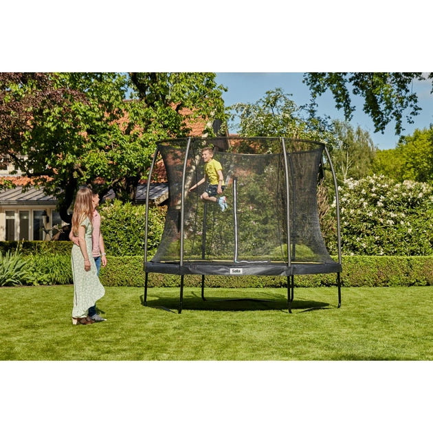 Salta Comfort Edition пропонує широкий спектр можливостей у плані форм, кольорів і розмірів. Обирайте круглий або прямокутний батут, обирайте яскравий рожевий, зелений або класичний чорний колір.