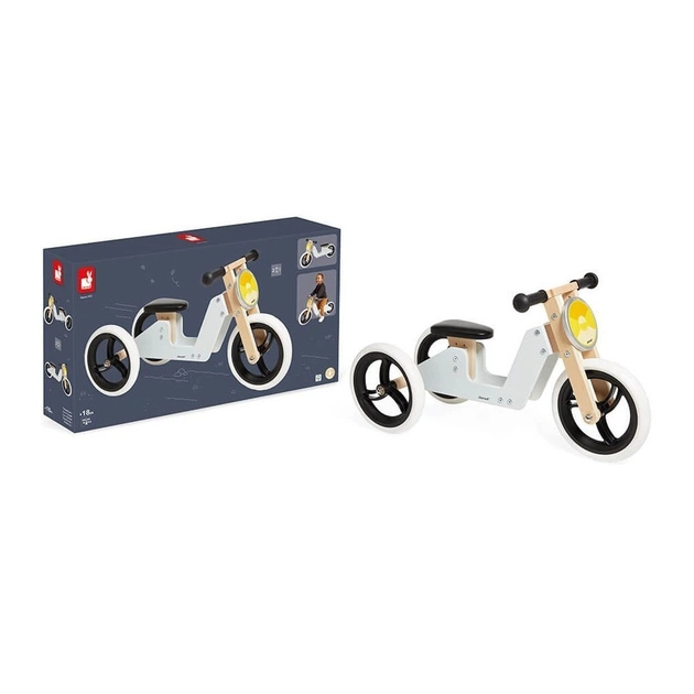 Ваша дитина зможе вирушити назустріч пригодам на цьому чудовому дерев'яному триколісному велосипеді, який перетворюється на балансир. У версії триколісного велосипеда ваша дитина з 18 місяців розвиватиме свої моторні навички, а у версії балансира, у віці близько 3-х років, вона навчиться зберігати рівновагу.