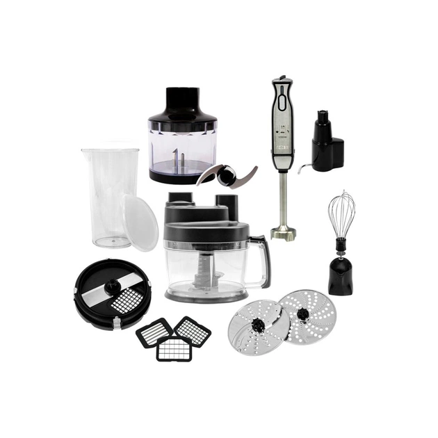 Комплект складається з різноманітних насадок, які задовольнять всі ваші кулінарні потреби. У вашому розпорядженні будуть: диск для нарізання скибками, тертка, ніж для подрібнення, насадка-вінчик та насадка-блендер. Особлива деталь – подрібнювач, об'ємом 2000 мл, що дозволяє обробляти великі обсяги продуктів без потреби в додаткових пристроях. У комплект також входить мірна склянка на 0.6 л, що стане в нагоді для точного відмірювання інгредієнтів, та міні-подрібнювач для більш делікатних завдань.