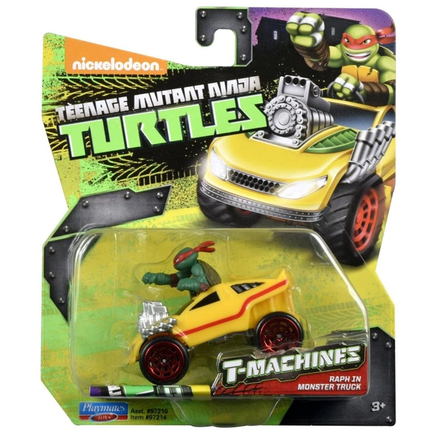 Бойовий транспорт TMNT Черепашки-Ніндзя Рафаель у вантажівці-монстр (97214) - це унікальні автомобілі, створені Черепашками. Кожен вид транспорту має металеву основу, яскраві диски коліс, свого унікального героя. Ви можете зібрати всю колекцію міні-транспорту. Фігурка незнімна. Для дітей у віці старше 3-х років.