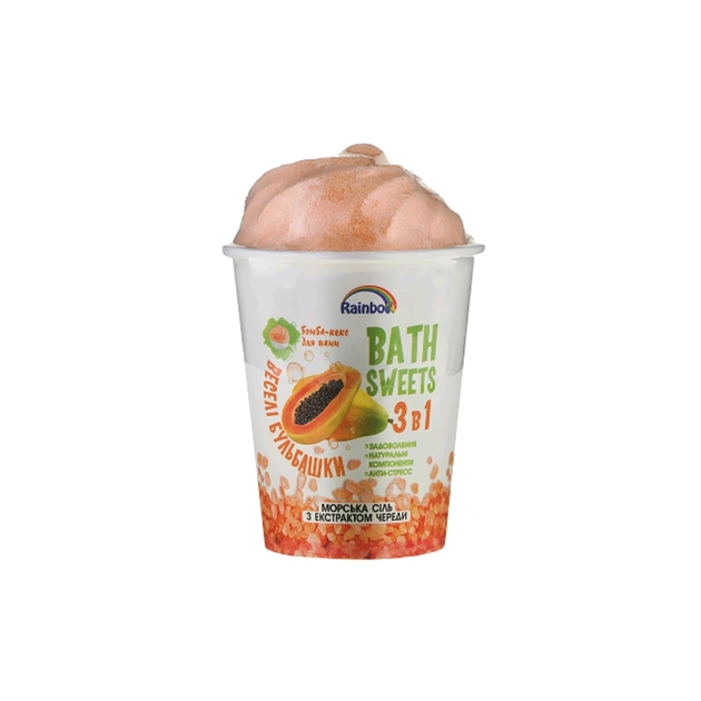 Набір Аква Шайн Rainbow Веселі бульбашки - це набір, який складається з двох компонентів: бомби-кексу для ванни та морської солі з екстрактом череди.
