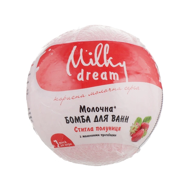 Бомба для ванн Milky Dream "Стигла полуниця" з молочними протеїнами та олією льону для найніжнішої шкіри! Бомба з чудовим ароматом полуниці, чудово вирує у ванній.