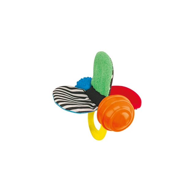 Іграшка має прорізувач, сприяє розвитку дрібної моторики та слуху, концентрації уваги. Рекомендований вік: 0-12 місяців (від народження). Матеріал: пластик, текстиль. Розмір іграшки: 13.5 х 14 см. Упаковка: коробка 13.5 x 20 x 6.5 см.