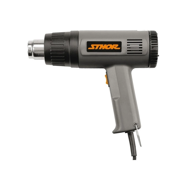 Технічний фен STHOR 79327 – професійний інструмент, з яким виконуються різні ремонтні, оздоблювальні, будівельні, виробничі та інші види робіт. Наприклад, щоб прискорити процес склеювання, зняти лакофарбове покриття, виконати пайку або всіляко термічно обробити різні поверхні. Цей універсальний інструмент відмінно підходить для використання в побуті і оснащений захистом від перегріву, за рахунок чого при роботі з ним ви можете себе почувати впевнено і в безпеці. Потужність становить 1500 Вт, зазвичай така потужність у професійних фенів, тому для побутових завдань його вистачить з лишком. Висока потужність добре поєднується з ергономічною конструкцією приладу і прогумованою поверхнею в задній частині що забезпечує комфортне використання при тривалій експлуатації. З ергономічною рукояткою фен не ковзає в руках і його можна зі зручністю і без побоювання розташовувати під кутом 90 градусів. Важить він всього 0.71 кг, тому ви довго здатні працювати рукою без втоми. У інструменту робоча температура 300 та 500 градусів. Також є регулятор потоку повітря, що дозволяє перемикатися між значеннями: 300 та 500 л/хв. За рахунок нагрівального елементу прискорюється нагрів і поліпшується розподіл тепла. Є зручна скоба для підвішування інструменту.