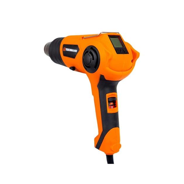 Фен промисловий THG-2100 DA обладнаний відкидною металевою скобою для підвішування на робочому місці, а також опорами для міжопераційного зберігання соплом вгору.