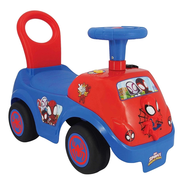 Яскравий чудомобіль, виконаний в стилі популярного мультсеріалу про Людину-Павука студії MARVEL «Спайді та його дивовижні друзі», розважить дитину миготливими вогниками, приємними мелодіями, кумедними звуками, а також реалістичними звуками двигуна та сигналу.