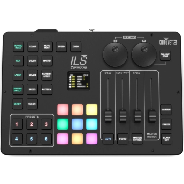 Запаліть ніч та розженіть темряву без необхідності витрачати години на складне програмування. Створюйте скоординовані світлові шоу за лічені хвилини! Забудьте про DMX — тепер всесвіт ILS у вашому розпорядженні. ILS Command здатний керувати будь-яким продуктом із підтримкою цієї технології, забезпечуючи бездротовий зв'язок через вбудований передавач D-Fi. Силіконові кнопки з підсвічуванням гарантують тактильну реакцію та чудову видимість навіть у повній темряві.