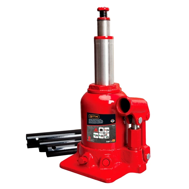 Домкрат GTM гідравлічний пляшковий 2т (150-370мм) двохштоковий (TF0202)