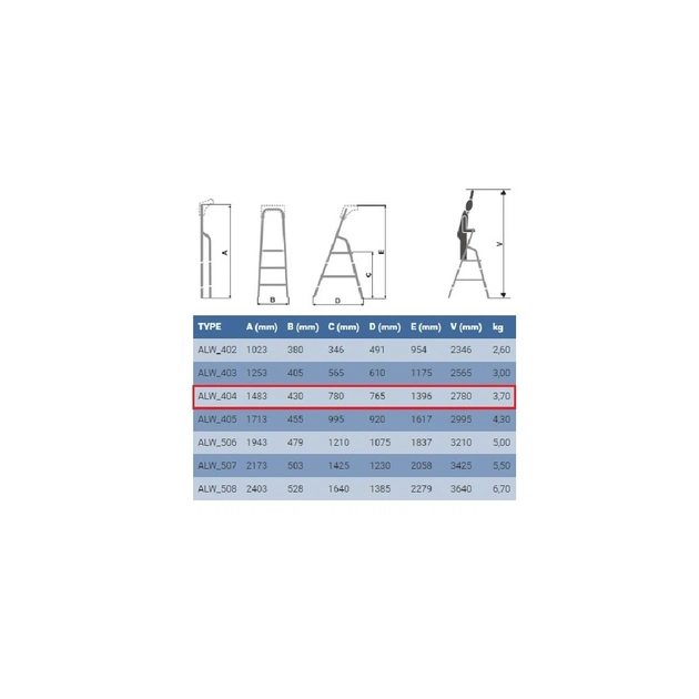 Драбина ELKOP cтремянка 4сх. верхя сходинка-0,78м (ALW 404)