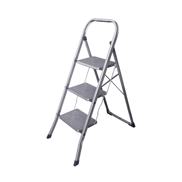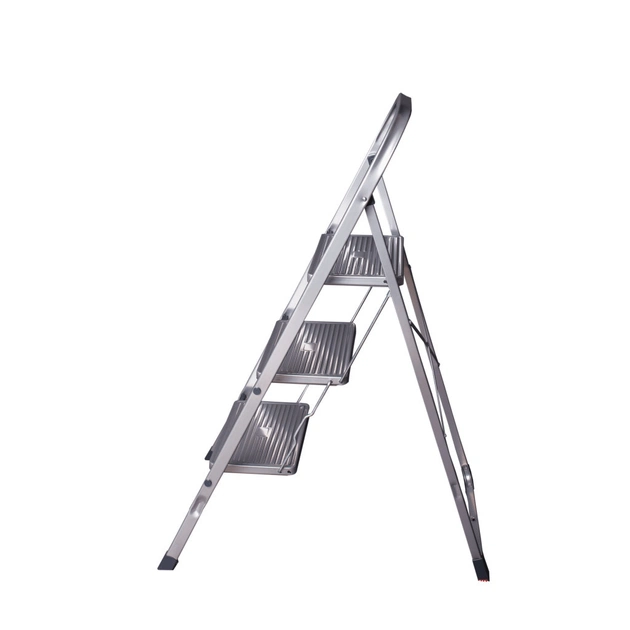 Побутова драбина MAX — практична та зручна у користуванні. Ребриста поверхня її сходинок протидіє ковзанню стопи на їхній поверхні, а двокомпонентні захисні опори - ковзанню самої драбини по підлозі, забезпечуючи стійкість та стабільність положення. Захисне епоксидне покриття робить виріб більш зносостійким, а зручна система складання забезпечує компактність та легкість у зберіганні.