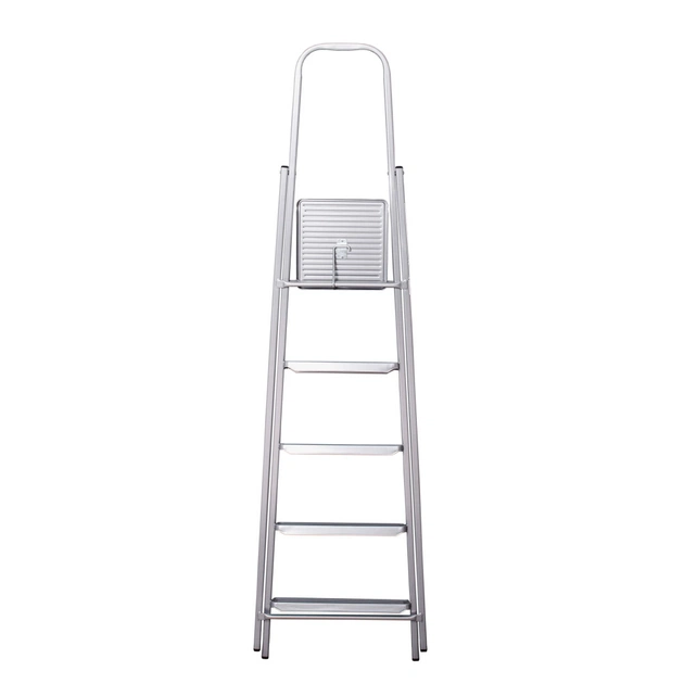 Надійна та стійка сталева драбина. Захисне епоксидне покриття робить виріб більш зносостійким. Ребриста поверхня сходинок протидіє ковзанню. Висока ручка надає додаткової зручності, дозволяючи відчувати себе безпечніше на висоті. Система складання забезпечує компактність та легкість у зберіганні.
