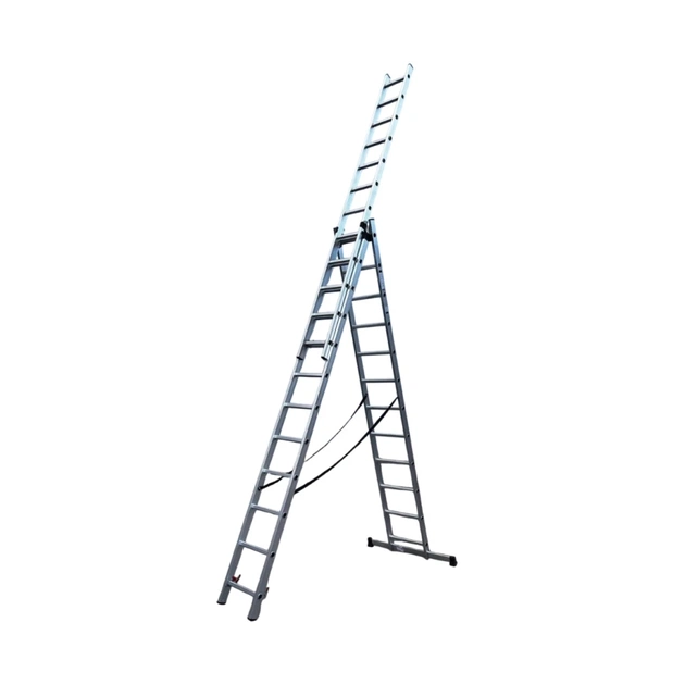 Трисекційна драбина GTM KME312 – це ідеальне рішення для будь-яких робіт на висоті. Завдяки універсальній конструкції їх можна використовувати як приставну, висувну драбину або стрем’янку. Посилений алюмінієвий профіль забезпечує легкість транспортування, довговічність та стійкість до корозії.