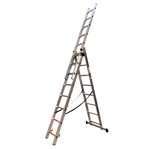Трисекційна драбина GTM KME308 – це ідеальне рішення для будь-яких робіт на висоті. Завдяки універсальній конструкції їх можна використовувати як приставну, висувну драбину або стрем’янку. Посилений алюмінієвий профіль забезпечує легкість транспортування, довговічність та стійкість до корозії.