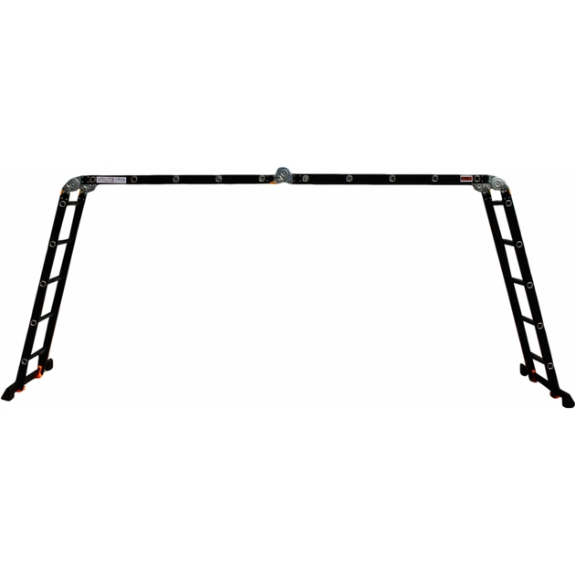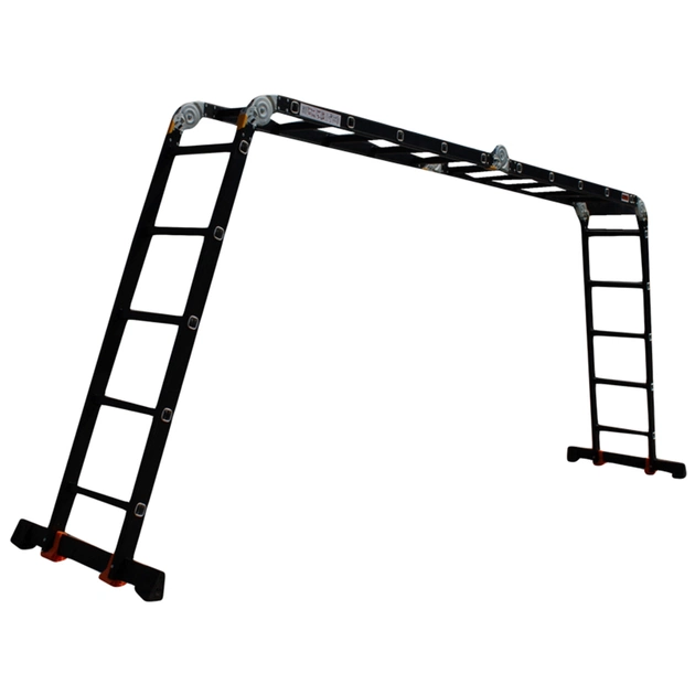 Драбина-трансформер GTM KMP403A — універсальна драбина, яка може виконувати функції драбини або приставної драбини. Алюмінієвий профіль зі збільшеною товщиною стінки (1.2 мм вертикальна і 1.8 горизонтальна), з ребрами жорсткості, фарбований методом електрофорезу, великі посилені замки, збільшена ширина нижньої траверси (на 10 см), збільшена ширина драбини (на 2 см).