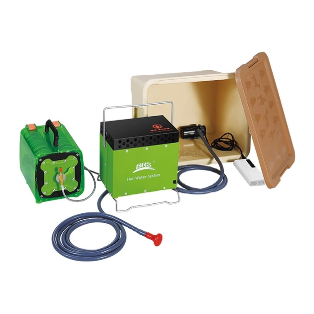 - до комплекту входять контейнер BRS-Q5 для газових картриджів, насос, шланг із душовою насадкою, резервуар для води;