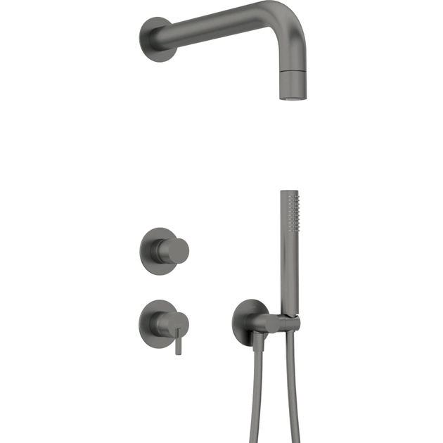 Душовий набір Deante Silia з верхнім душем, ручною лійкою та змішувачем прихованого монтажу в елегантному титановому оздобленні. Верхній душ із дощовим потоком, виготовлений із міцної латуні, має антивапняну систему Anti-calc. Ручна лійка з функцією Cool-out запобігає нагріванню та забезпечує комфортне використання. Гнучкий шланг із системою Anti-twist захищає від скручування.
