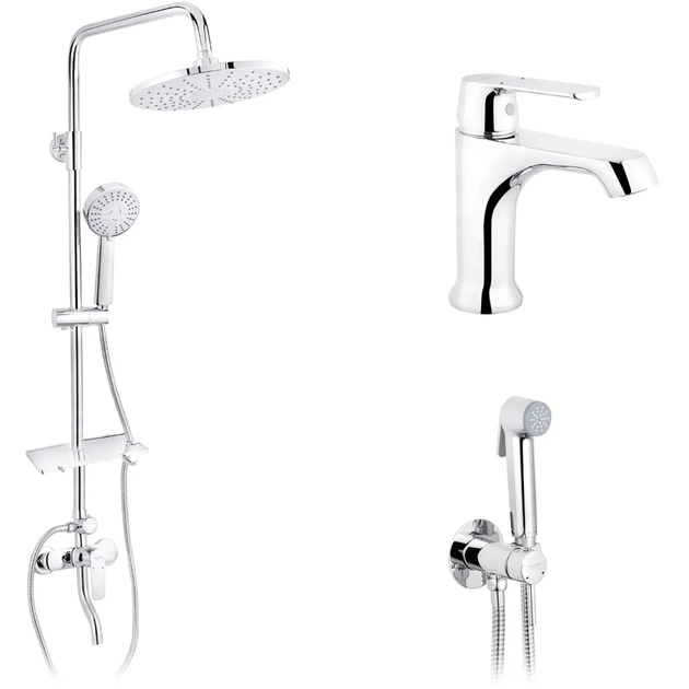 - Комплексне рішення 3 в 1 — усе потрібне для душу, умивальника і гігієнічного душу в одному наборі.