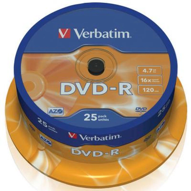 Особливості диска DVD-R Verbatim 4.7Gb 16X CakeBox 25шт (43522):