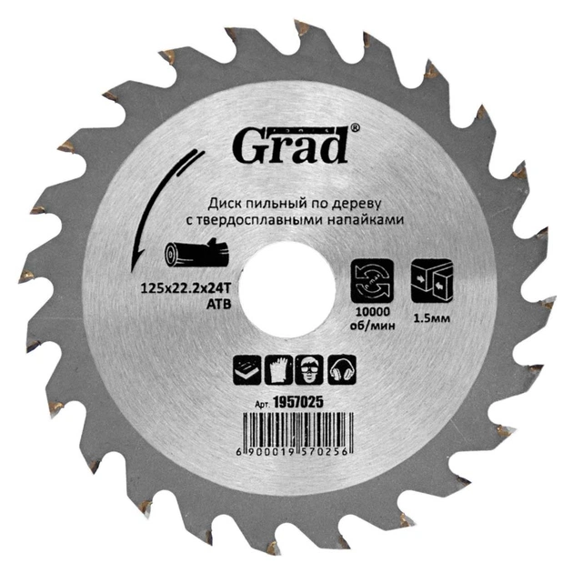 Диск пильний Grad по дереву з твердосплавними напайками Ø125×22.2×24Т, 10000об/хв GRAD (1957025) (1957025)