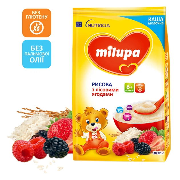 Молочна каша Milupa Рисова з лісовими ягодами є природним джерелом харчових волокон, вітамінів і мінералів. Харчові волокна сприяють поліпшенню травлення, нормалізації моторики кишківника, допомагають запобігати утворенню закрепів.