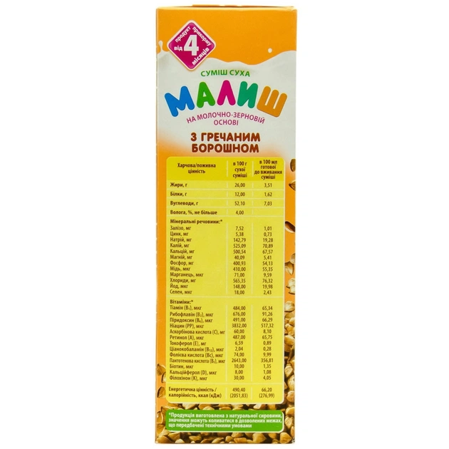 Молочна суха суміш Малюк Хорол ідеально підходить для профілактики та як складник дієти у разі анемії, захворювань шлунково-кишкового тракту. Для дітей, які страждають на закрепи. Суміш багата на рослинні білки, амінокислоти, калій, фосфор, магній, залізо, вітаміни групи В. Добре засвоюється організмом. Має високий вміст заліза. Містить багато білка та незначну кількість вуглеводів. Містить рутин. Без консервантів, барвників, ароматизаторів. Не містить ГМО, а також пальмової олії.