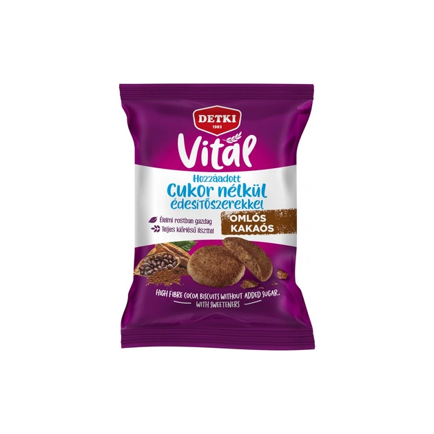 Detki Vital - хрумке печиво представлене у трьох варіантах смаку, виготовлене з цільнозернового борошна без додавання цукру, що ідеально підходить для різноманітного та збалансованого харчування.