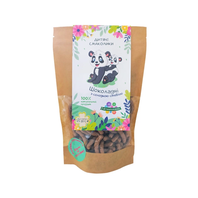 Палички неглазуровані Дитячі Смаколики Шоколадні з солодкою стевією і вітамінами 25 г — унікальні смаколики, ідентичні зерновим кулькам для сніданку. Продукт не містить білого цукру і штучних добавок, але наділений натуральним какао і невеликою кількістю стевії. Філігранні смаколики хрусткої текстури переконають дітей і дорослих з'їсти сніданок, а у поєднанні з йогуртом або сиром вони перетворяться на смачну їжу.