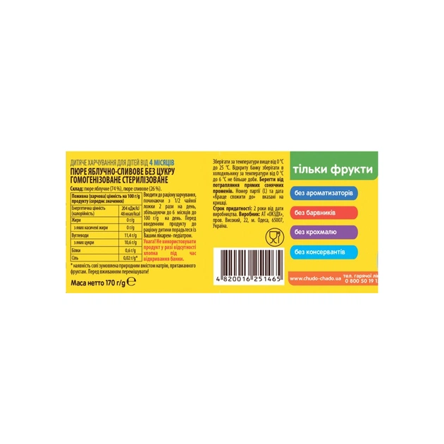 Склад: пюре яблучне (74%), пюре сливове (26%).