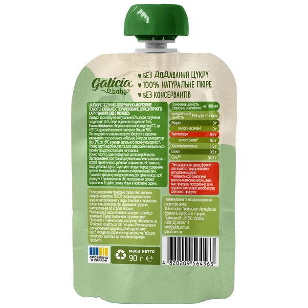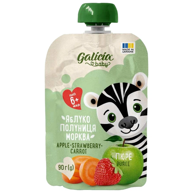Дитяче пюре Galicia Baby яблучно-полунично-морквяне натуральне гомогенізоване 90 г (4820209564563)