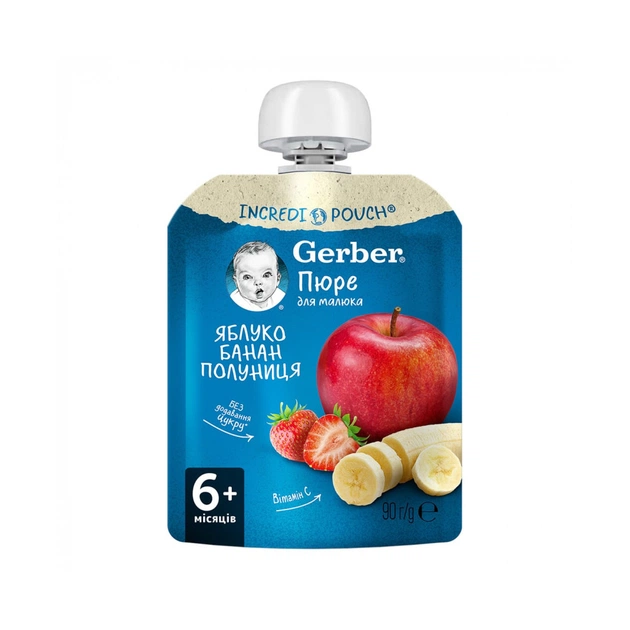 ОСОБЛИВОСТІ ПЮРЕ GERBER ЯБЛУКО БАНАН ПОЛУНИЦЯ 90 Г: