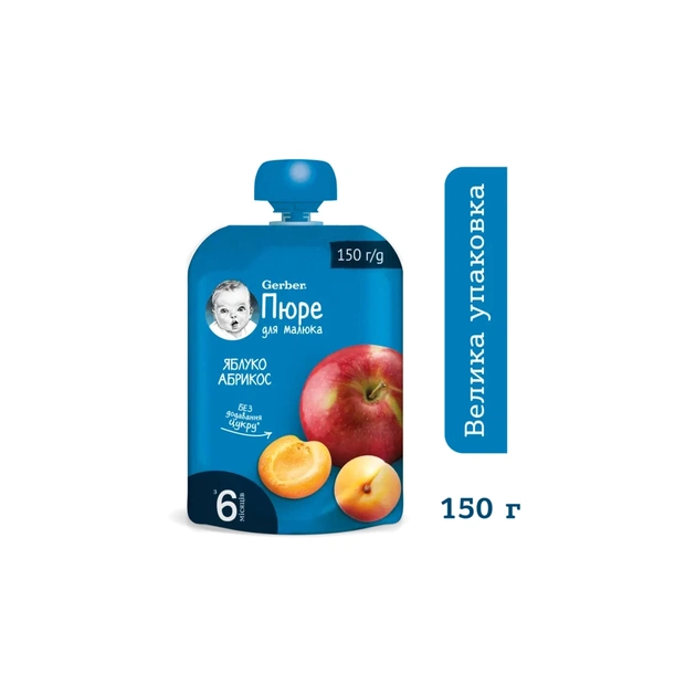 Пюре Гербер яблуко-абрикос, 150г — це повноцінний обід, який забезпечує вашого малюка необхідною енергією і формує звичку до правильного живлення з раннього дитинства.