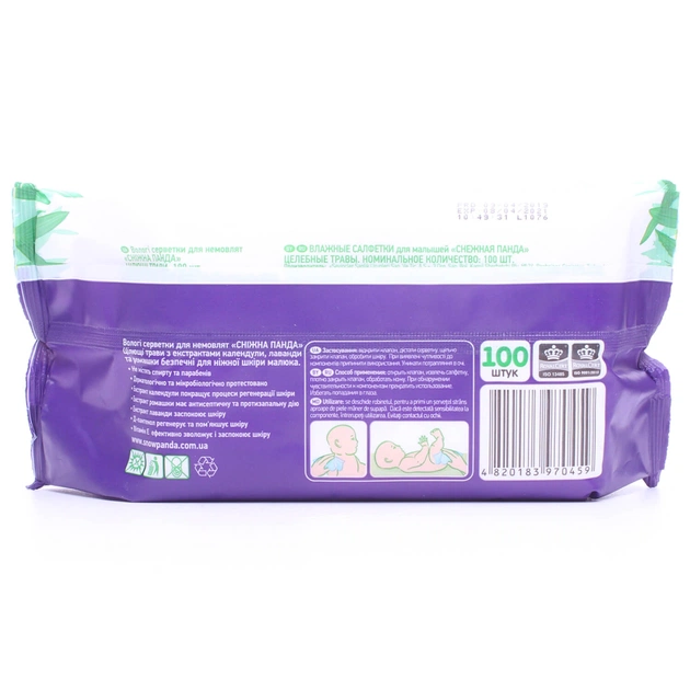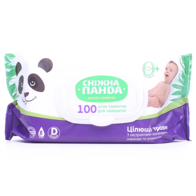 Дитячі вологі серветки Сніжна Панда для немовлят Цілющі трави, 100 шт. (4820183970459)