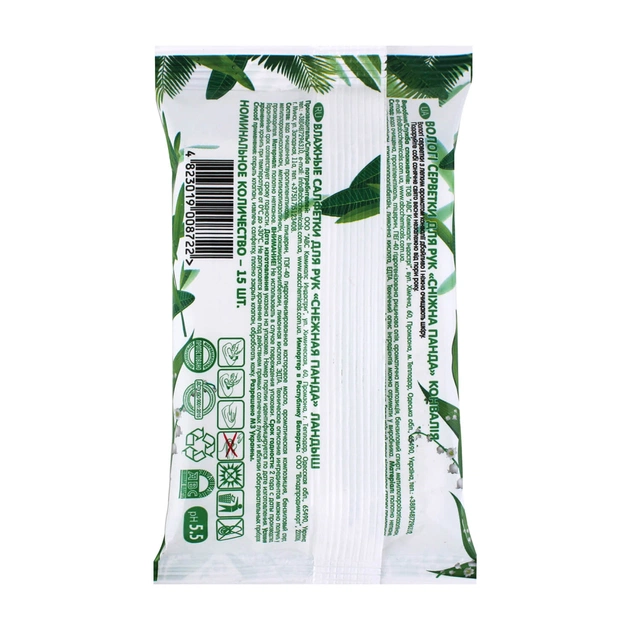 Дитячі вологі серветки Сніжна Панда для рук Конвалія 15 шт. (4823019008722)