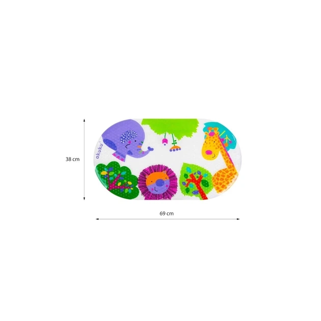 Дитячий протиковзкий килимок Akuku – максимальний захист малюка під час купання! Продукт має присоски для надійної фіксації та захисту від ковзання. Виріб виготовлений із високоякісного ПВХ. Воно не містить фталатів. Яскравий дизайн неодмінно приверне увагу малюків і зробить купання ще цікавішим. Виріб підходить для дитячої ванни, ванни та душової кабіни. Його не можна дезінфікувати чи заливати окропом.