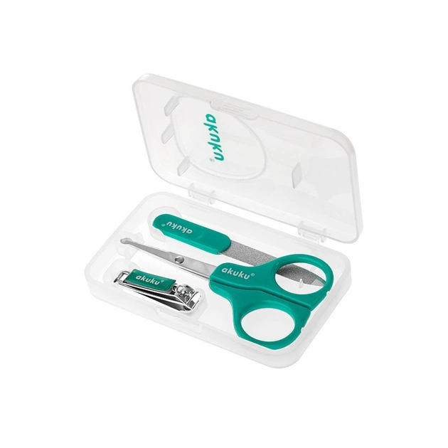 Практичний набір для манікюру дасть змогу кожній турботливій мамі доглядати за нігтями свого малюка. Ножиці (з тонкими металевими лезами та закругленими краями) і щипчики допоможуть безпечно й надійно стригти маленькі нігті, а пилка легко прибере нерівності нігтя, захищаючи дитину від подряпин. Щоб мінімізувати ризик несподіваного руху дитини, рекомендується підстригати нігті, поки дитина спить.