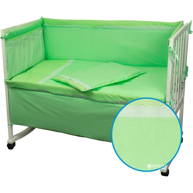 Гарний набір у дитяче ліжечко Руно виготовлений із високоякісної сировини (100% бавовна) й абсолютно безпечний для здоров'я дитини. Бавовна — це перевірена часом класична, натуральна сировина для виготовлення постільної білизни. Білизна, виготовлене з бавовни, має прекрасну фактуру, м'яку на дотик, і водночас дуже міцну. Бавовняна тканина не викликає алергії, не подразнює шкіру, вбирає зайву вологу та нейтралізує статичну електрику, накопичену за день, а тому ідеально підходить для комфортного та повноцінного відпочинку під час сну.